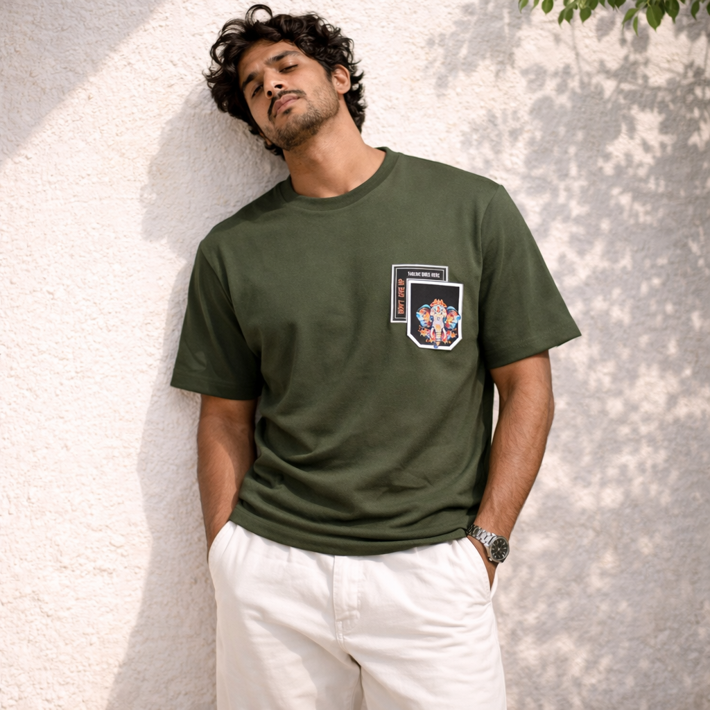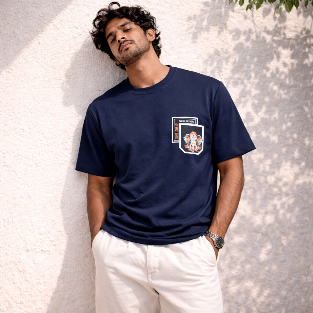 A standout feature of the AquaVibe Graphic Essential Tee is its chest graphic patch detail. Positioned neatly on the front, the artwork adds a stylish focal point that gives the shirt individuality and modern appeal. The graphic element creates a subtle streetwear vibe without overwhelming the clean silhouette. It is ideal for men who like statement details in a tasteful and wearable way.