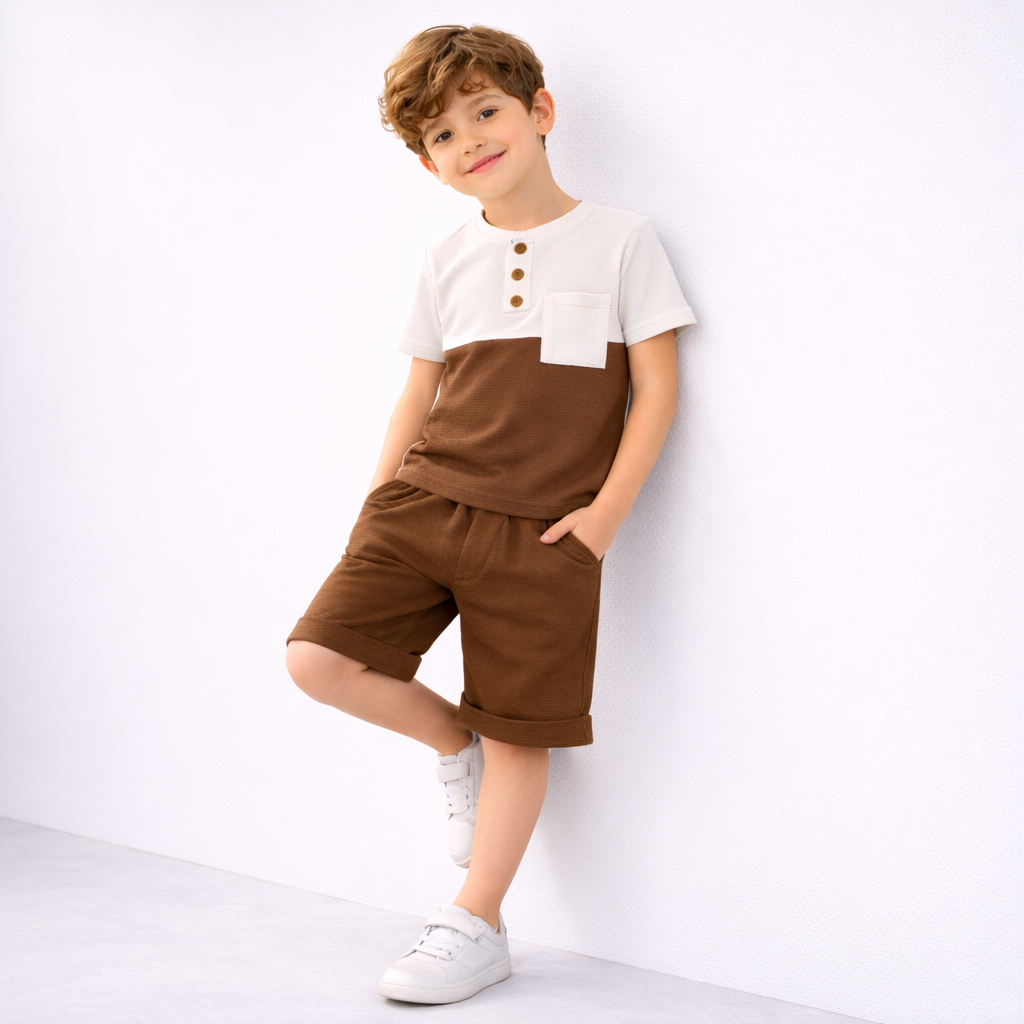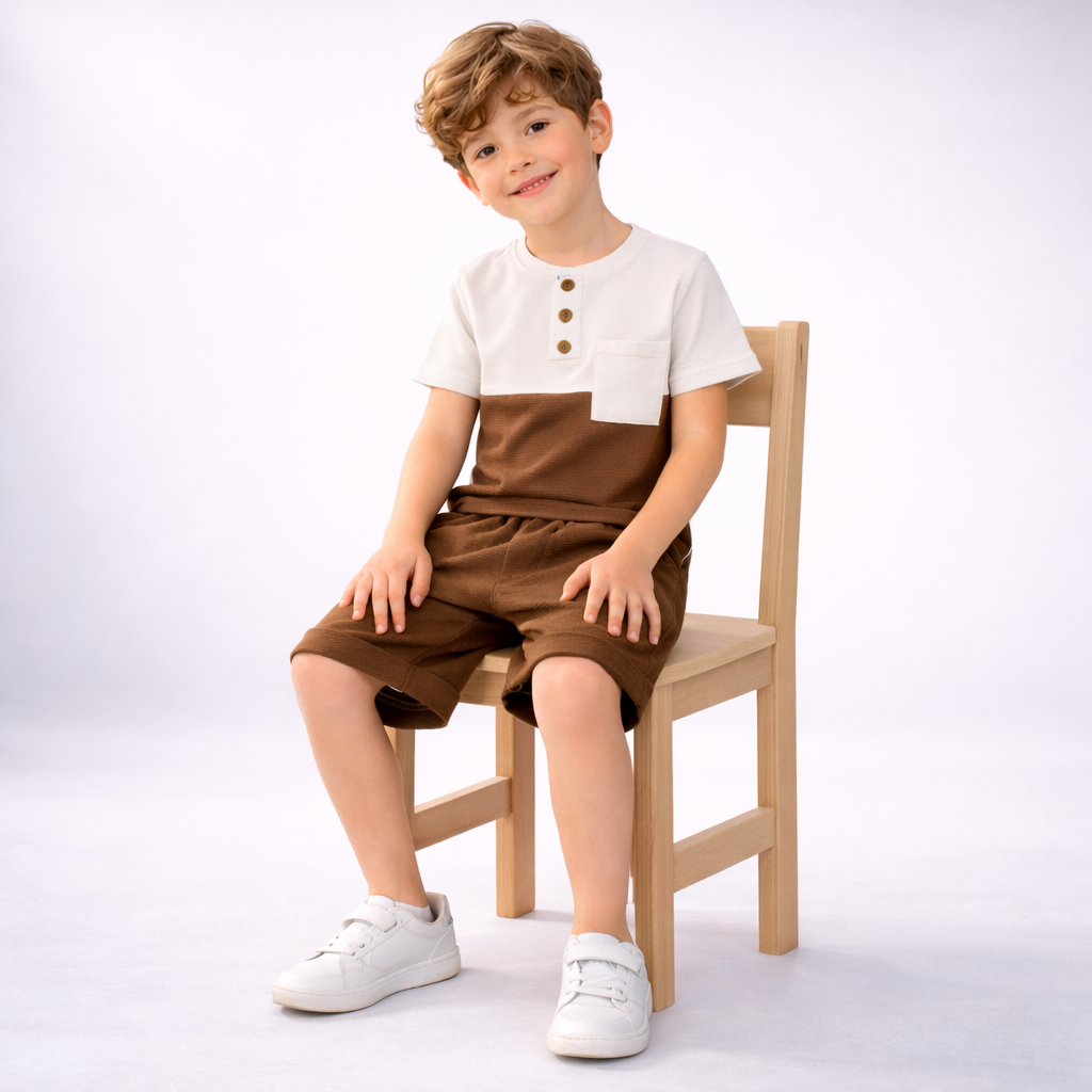 The Cocoa Breeze Kids Co-Ord Set is a stylish and comfortable outfit designed for children who love freedom of movement and parents who appreciate smart everyday fashion. Blending premium comfort, modern color-block styling, and practical details, this matching t-shirt and shorts set is the perfect addition to any child’s wardrobe. Whether for casual outings, vacations, family gatherings, playdates, or daily adventures, this set delivers effortless charm and all-day ease.