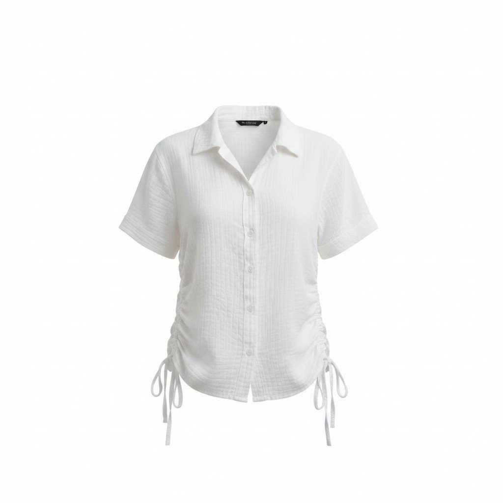 One of the standout features of the Ivory Breeze Ruched Summer Shirt is the adjustable side ruching detail. Delicate drawstrings at the sides create a flattering gathered effect that adds movement, shape, and stylish personality to the silhouette. This design element allows you to customize the fit while giving the shirt a modern fashion-forward edge. It transforms a classic button-down shirt into something fresh, youthful, and unique.