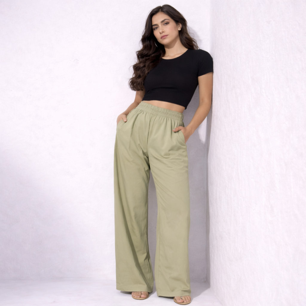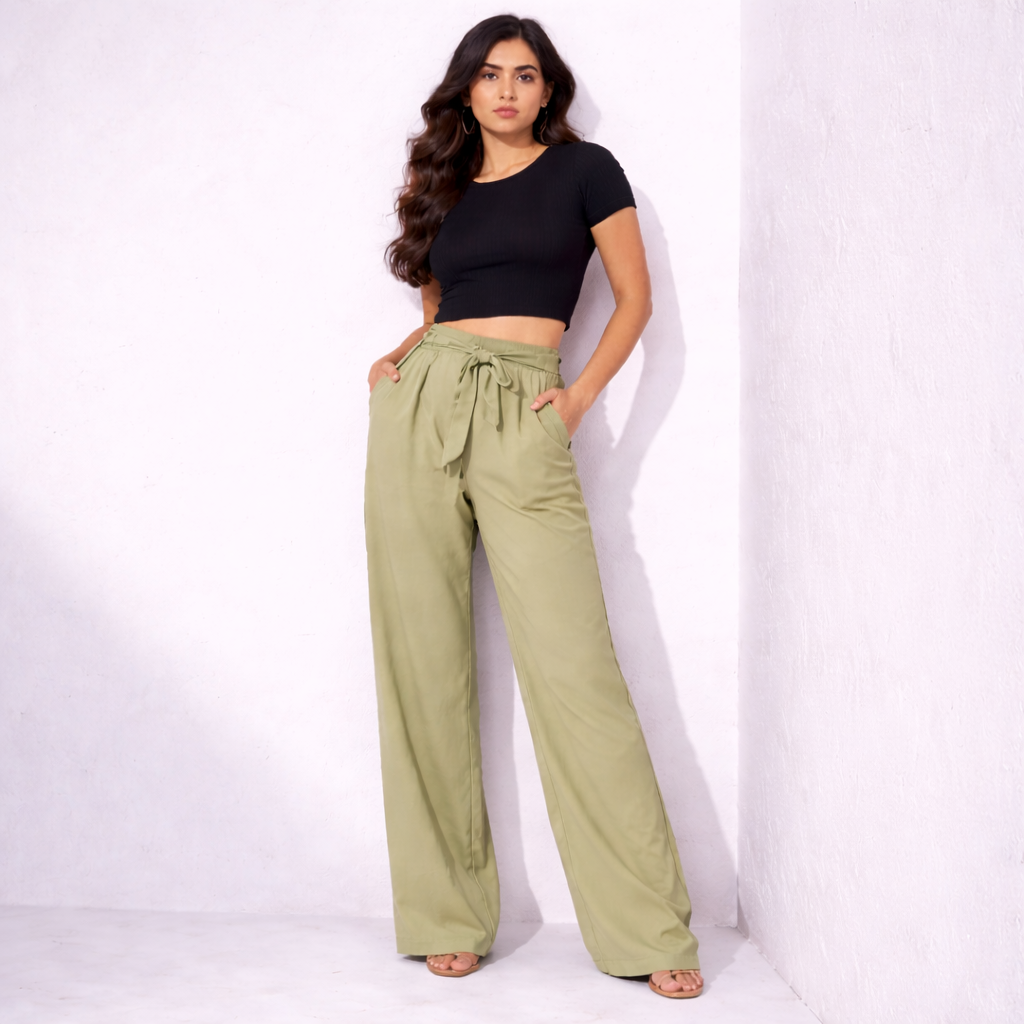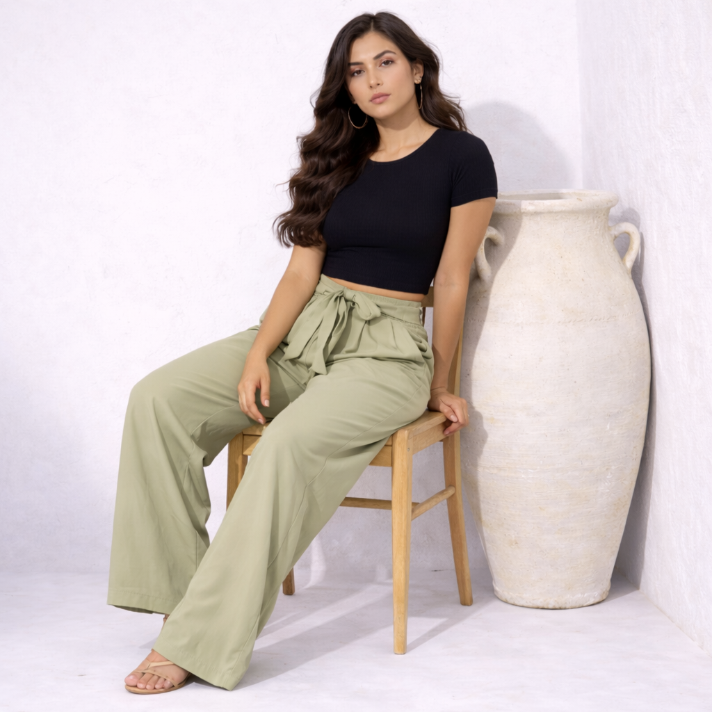 The elegant sage green tone gives these trousers their signature fresh and modern appeal. Calm, sophisticated, and easy to style, sage is a versatile neutral-inspired shade that pairs effortlessly with black, white, beige, cream, navy, or pastel tops. It adds a soft touch of color while maintaining a polished and minimalist aesthetic. This refreshing hue works beautifully across seasons, making the trousers a dependable staple year-round.